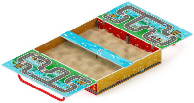 3 | Крышка | выполнена из влагостойкой фанеры толщиной не менее 18 мм, кромки фанеры тщательно шлифованы, окрашена с нанесением рисунка (Азбука). Крышка оснащена - ручками из стальной трубы диаметром 22 мм, ручки окрашены порошковой краской в красный цвет. Крышка крепиться к бортам при помощи петель. Размеры 1200х580 мм | шт | |