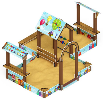 Песочный дворик двойной большой с навесом Домик (Коричневый) - ИО 6.01.03-02
