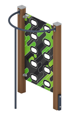 Скалолаз состоит из щита из влагостойкой фанеры, толщиной 18 мм, размер 1180х800, с прорезями. |