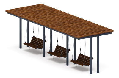 Подвесы скамьи выполнены из металлического квадратного профиля 80х80 мм с толщиной стенки 4 мм L=26490 мм и 2740 мм |